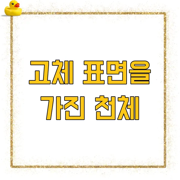 가장 먼저 떠오르는 고체 표면을 가진 천체는 바로 '행성'입니다. 태양계에는 수많은 행성들이 존재하며, 각 행성은 독특한 특징을 가지고 있습니다. 수성, 금성, 지구, 화성은 암석형 행성으로, 단단한 표면 을 가지고 있습니다. 반면, 목성, 토성, 천왕성, 해왕성은 가스 행성으로, 고체 표면이 존재하지 않습니다.